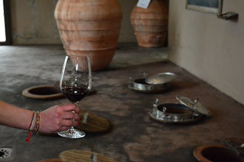 Le nostre anfore di terracotta provengono in parte dalla Georgia (Caucaso) – caratterizzate dalla forma ovoidale – in parte dalla Toscana, con classico aspetto a orcio. Sostano sia sottoterra per il controllo naturale della temperatura, sia fuoriterra – in cantina, allineate assieme ai tonneaux.