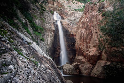 Sa Stiddiosa ist der am schwierigsten zu erreichende Wasserfall unter den genannten. Um die Wanderroute (ca. 2 km, mit einem Höhenunterschied von 300 m) zu vermeiden, kann man jedoch die Wanderung verlängern, indem man einem Weg mit geringerem Höhenunterschied folgt. Folgen Sie den gut beschilderten Wegen von der Landkirche Santa Barbara bis zum Parkplatz. Hier finden Sie einen Informationspunkt mit zwei Parkwächtern. Der Eintritt kostet im Sommer 7 Euro, im Winter ist er kostenfrei. Sie dürfen die Wege nur mit geschlossenen Schuhen betreten und müssen mindestens eine große Flasche Wasser dabeihaben. Wir empfehlen Ihnen, sich mit Wander- und Kletterschuhen auszustatten und sich früh am Morgen zum Eingang zu begeben, nicht nur, weil die Sonne in den Bergen früh untergeht, sondern auch, um das wunderbare Schauspiel zu genießen, wenn das Sonnenlicht gegen 9 Uhr auf das Wasser trifft.