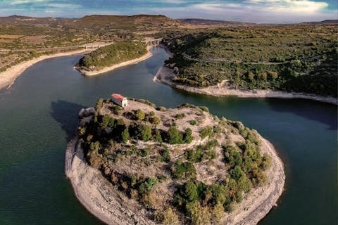 Whether one calls it San Sebastiano, Is Barrocus, or Lake Isili, this young lake is incredibly appealing. It’s set in a scenic position and hosts a small islet, once a hill, in the middle. The islet is crowned by a church dedicated to its namesake saint, the martyr Saint Sebastian.