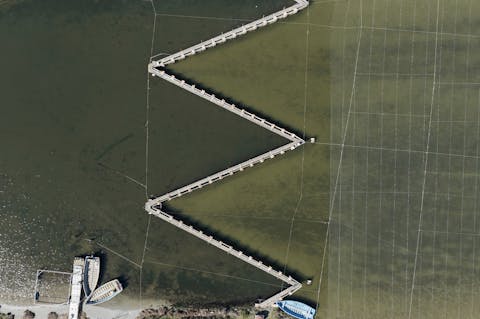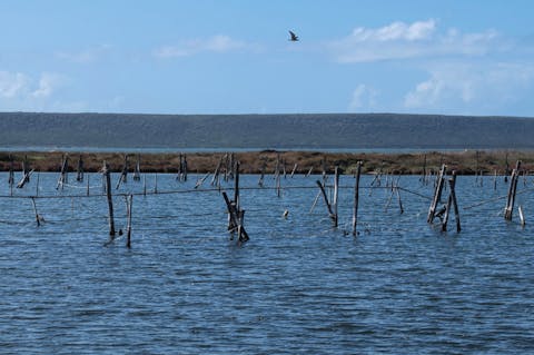 At the time, no one imagined that a true mussel farm could thrive here, in a brackish pond, just a few kilometers from the coast but also close to the city. Yet the young men began experimenting with a series of rudimentary nurseries: wooden poles driven into the seabed, nets supporting the “socks” where the young mussels would find their first home.